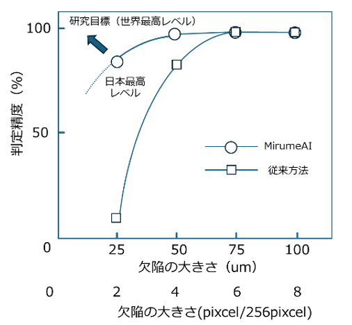 - 256×256画素中1〜2画素レベルの欠陥識別