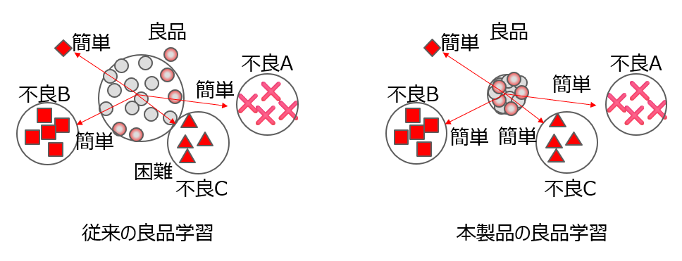 従来AIは良品の分布が広く、不良との境界が曖昧になりがちです。